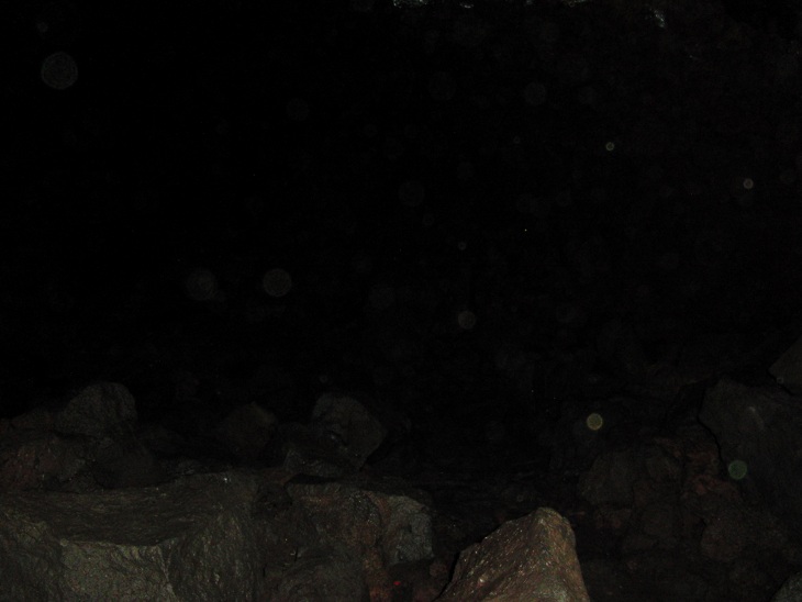 まっくら。。日光も届かず、カメラのフラッシュでも足元がちょっと見えるだけ。